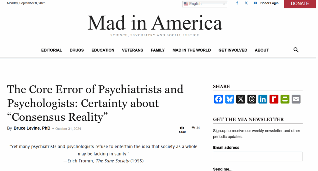 The core error of psychiatrists and psychologists: Certainty about “Consensus Reality”
